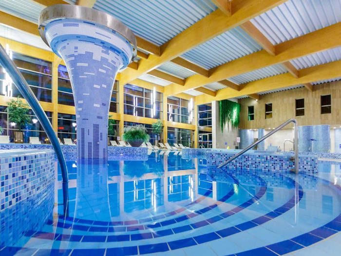 Jūsų poilsio akimirkas praturtins apsilankymas pirčių ir baseinų komplekse, kurį sudaro: 8 skirtingos pirtys (įvairių temperatūrų garinės pirtys, infraraudonųjų spindulių pirtis, įvairaus drėgnumo ir temperatūros saunos, himalajų druskos pirtis, hamamas bei ledo kambarys). Plaukiosite 3 skirtinguose gėlo ir mineralinio vandens baseinuose su įrengtomis povandeninėmis masažinėmis srovėmis, sūkurinės ir vertikalios vonios. Plaukimo baseino ilgis net 24 m!