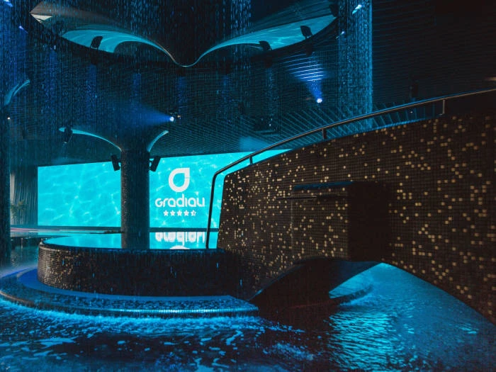 Lepinsitės laiku vandens ir pirčių zonoje, kur Jūsų laukia atsipalaidavimas sūkurinėje vonioje, cirkuliacinis dušas, kaitinimasis garinėje pirtyje, kurioje išsivalys oda ir pasišalins toksinai, o po karštos pirties atsigaivinsite plaukiodami baseine, kuriame naudojamas „Gradiali“ mineralinis vanduo tiesiai iš gręžinio. Na, o gerą fizinę formą palaikyti galėsite treniruoklių salėje.