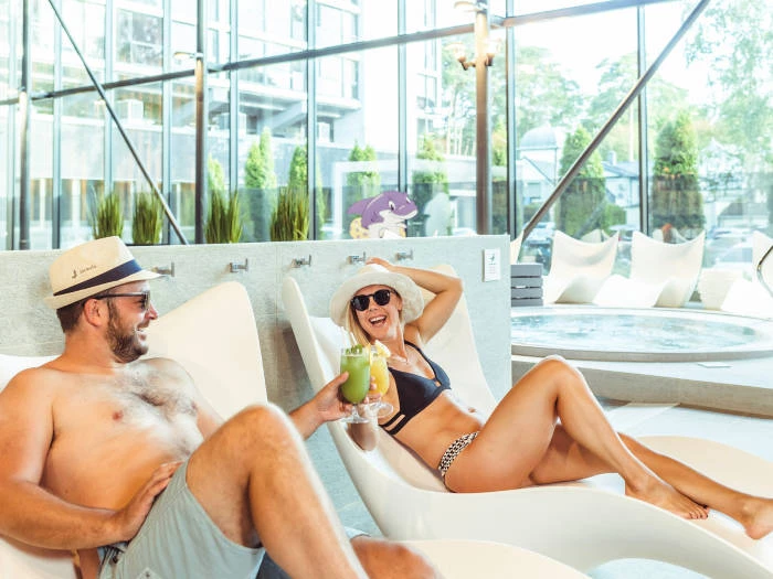 Mėgaukitės vandens pramogomis ir karštomis pirtimis „Wellness Oasis“ SPA centre. Pirčių, baseino ir sporto salės komplekse Jūsų lauks: 5 skirtingų rūšių pirtys (dvi skirtingų temperatūrų pirtys, sauna, garinė pirtis bei druskos pirtis), kaitinanti sūkurinė vonia bei kontrastiniai dušai, NET 4 baseinai (vaikų baseinas, du skirtingų temperatūrų baseinai su kaskadomis ir šaltasis baseinas. Atsigaivinti po vandens pramogų siūlome komplekso „Aqua“ bare. Už Jus viskas jau apgalvota, tad mėgaukitės atpalaiduojančiomis akimirkomis ir SPA malonumais!