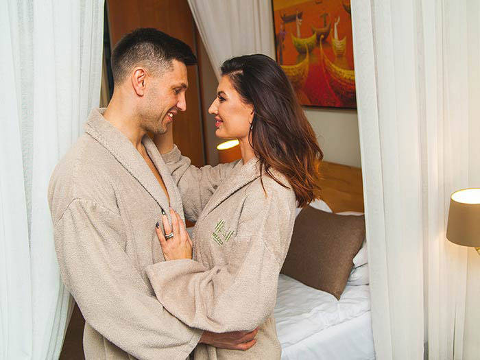 Įsikuriste dviviečiame (28 kv. m.) kambaryje, kuriame rasite viską, ko reikia Jūsų patogiam poilsiui: dvigulę lovą su minkštais čiužiniais, plokščiaekranį TV, spintą, staliuką bei kėdutes, mini šaldytuvą, taures ir virdulį. Taip pat turėsite mini virtuvėlę (ne visuose numeriuose), individualų vonios kambarį su vonia arba dušo kabina, kur rasite rankšluosčius, plaukų džiovintuvą bei natūraliais ekstraktais ir kvapais praturtintą „Damana“ kosmetiką.Viešėdami Druskininkuose patirkite dar daugiau įspūdžių