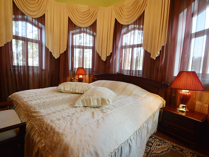 Apsistosite elegantiškame LIUKSO klasės kambaryje, esančiame viešbučio bokšte. Kambarys pasižymi komfortu ir elegancija, išskirtiniu Art Nouveau stiliaus interjeru, smulkiomis detalėmis ir prabanga. Natūralaus medžio baldai, dvigulė lova, dideli langai ir į grindis besileidžiančios tamsios užuolaidos, poilsio zona su minkštomis kėdėmis – visa tai leis pajusti prabangaus poilsio malonumus. Kambaryje rasite viską savo patogiai viešnagei: karališką dvigulę lovą, TV, WIFI, oro kondicionierių, drabužių spintą, mini barą, poilsio zoną, taip pat turėsite atskirą vonios kambarį su Jums paruoštais rankšluosčiais, plaukų džiovintuvu bei būtiniausiomis higienos priemonėmis.