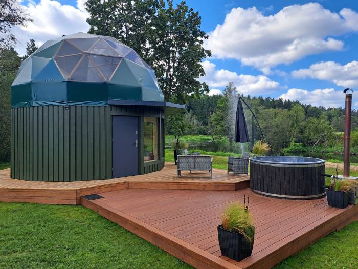 Šventosios slėnis – privatus kupolinės konstrukcijos namelis su kubilu bei pirtimi ant Šventosios upės kranto. Puikai tinka jaukiam poilsiui gamtoje dviese ar su šeima. Raminantis upės čiurlenimas, saulėlydžiai mėgaujantis kubilo šiluma privačioje terasoje ir gamtos ramybė aplinkui. Šis dovanų kuponas Jums suteikia poilsį Šventosios slėnyje bei pasimėgavimą kubilo ir pirties šiluma. Griliaus mėgėjai apsidžiaugs, nes gaminimui lauke paruošta Kamado bono kepsninė ir laužavietė, su visais reikalingais priedais. Puikus upės krantas žvejybai ir maudynėms. Namelyje laukiami ir tvarkingi augintiniai.